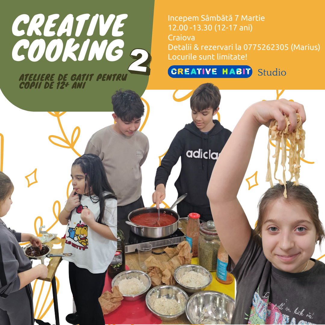 Înscrierile sunt deschise la Creative Cooking 1 și 2, începem pe & 7 Martie. Locurile sunt limitate.